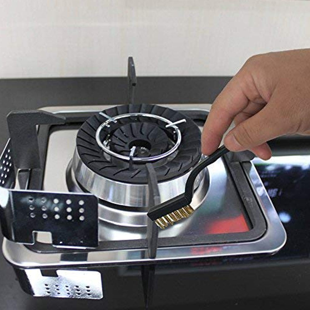 3pc Mini Wire Brush Set Brass Nylon Stainless Steel Bristles Household Cleaning Brush for Gas Stove, Smoke Machine Tool Burner Tiles Tap Rust Removal Welding Slag Dirt & Paint Scrubbing (3 Pcs Set)