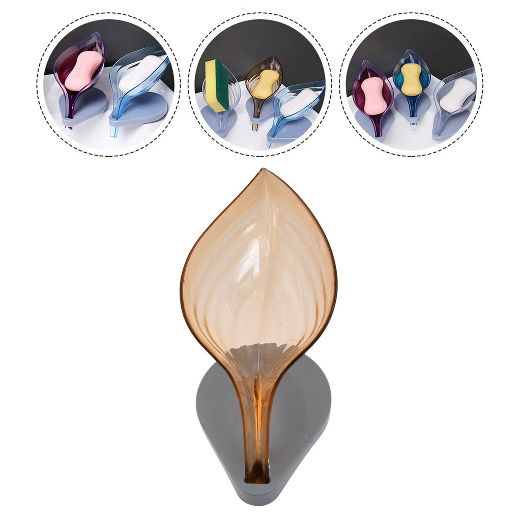 Plastic Leaf Shape Soap Box Self Draining Bathroom Soap Holder, Decorative Drainage Plastic Soap Dish with Draining Tray (1 Pc / With Color Box)