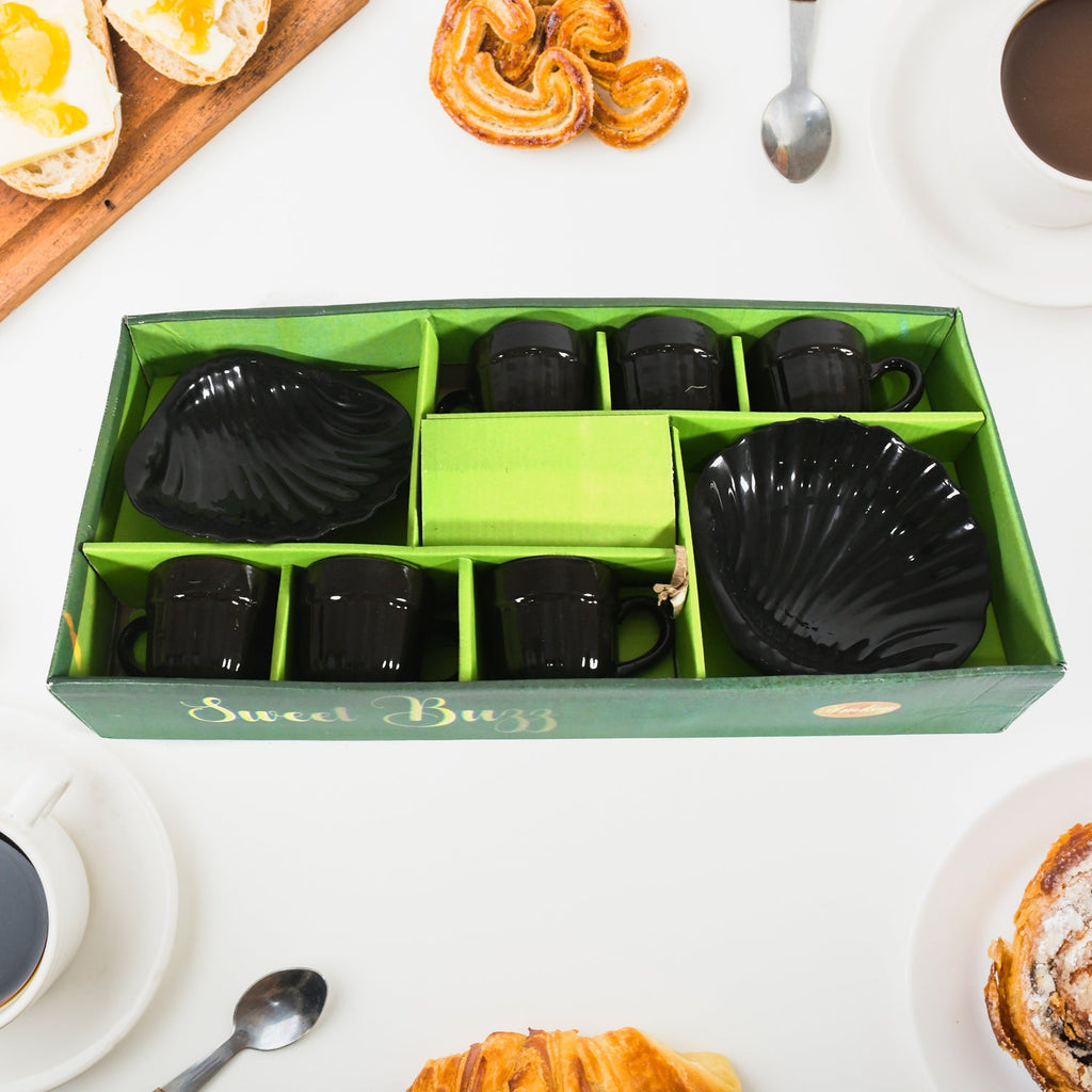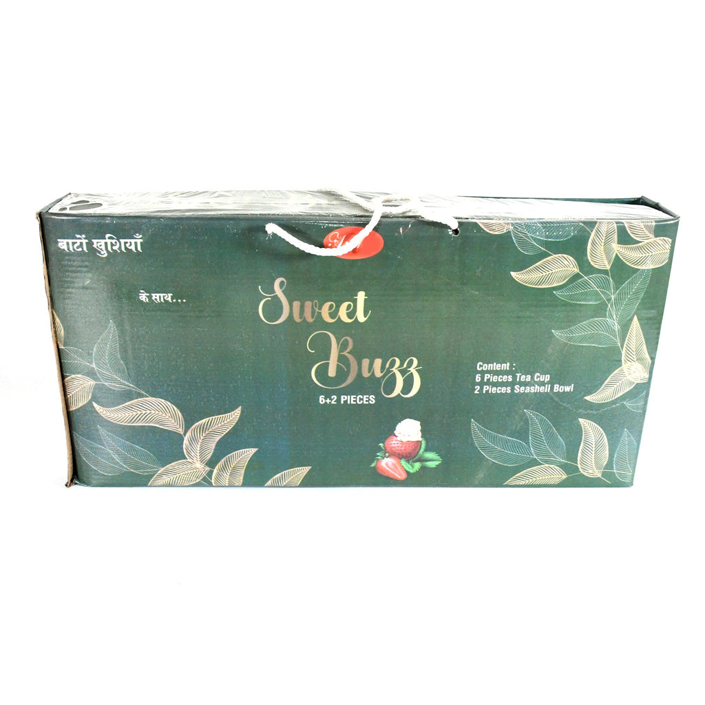 8237 Sweet Buzz Ceramic Tea / cups / Mug Set With Seashell Shape Serving Bowl Milk Cup, Coffee Cup, Tea Cup, Breakfast Cup, Drinking Mug or Outdoor for Household, Gift for Birthday, Wedding Party (8 Pcs set)