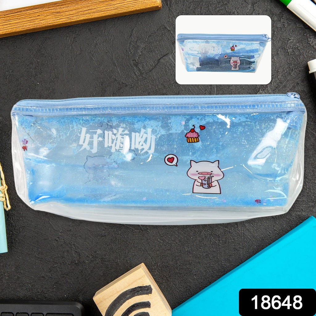 Transparent Unicorn Water Glitter Gel Pencil Zip Pouch Bag Zipper Coin Organizer Pouch Holder for School College Desk Cute Zipper Coin Organizer Makeup Cosmetic Pouch Holder (1 Pc)